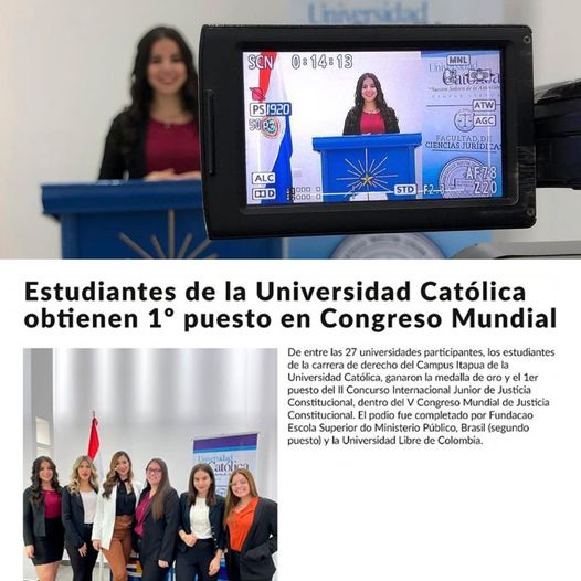 Katherine Giovanna Carmagnola Martínez, estudiante de 5to año de derecho en la Universidad Católica, es parte del equipo ganador del 1er. Puesto en el II Concurso Internacional Junior de Justicia Constitucional, del V Congreso Mundial de Justicia Constitucional.